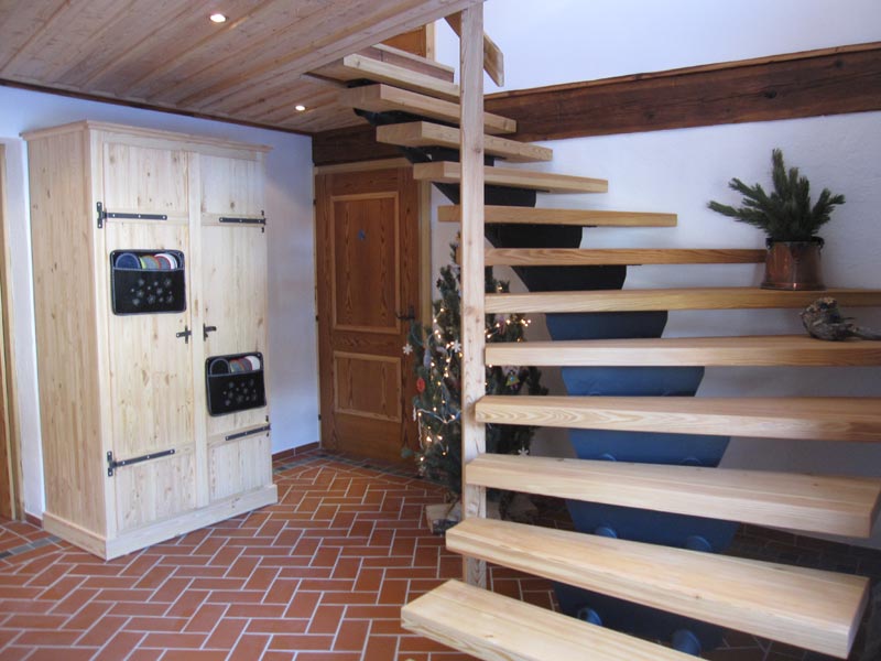 Das rauchfreie Appartement hat einen eigenen Eingang im Erdgeschoss mit einem geräumigen Flur, ein Gästetoilette und (Ski)Schuhheizung.