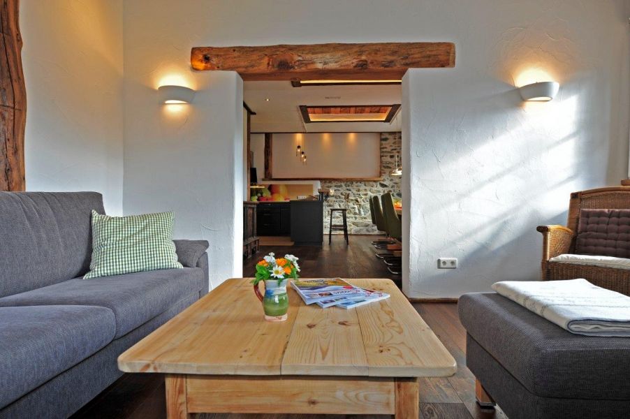 In der umgebauten Tenne befindet sich unser komfortabler Seminarraum (mit Beamer und Leinwand) der Platz für 16 Personen bietet.