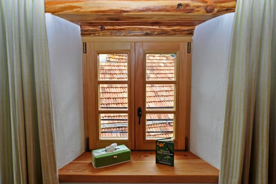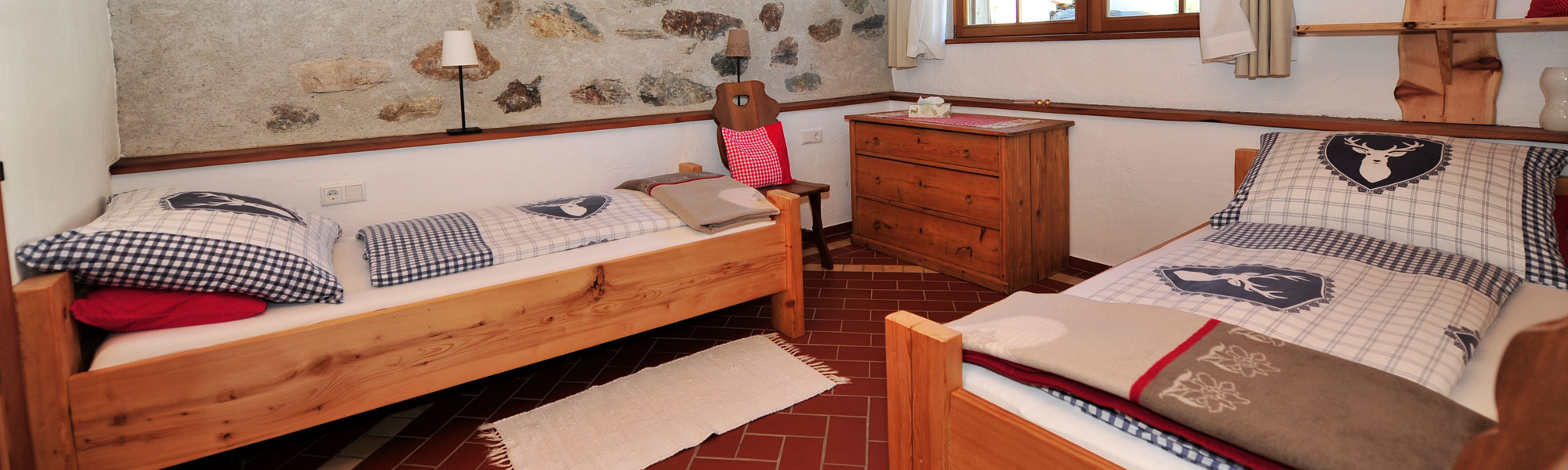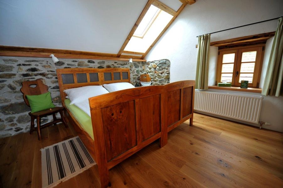 In diesem Zimmer schliefen damals die Knechten der Bauernfamilie in einem Strohbett und es befindet sich am oberen Stock des alten Bauernhauses.